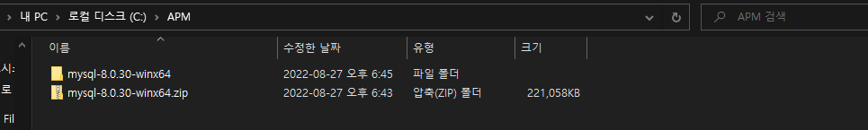 그리고 C:디스크에 APM 폴더를 만든 후 하위에 다운로드한 파일을 압축 해제한 후 안에 있는 파일을 넣어줍시다.