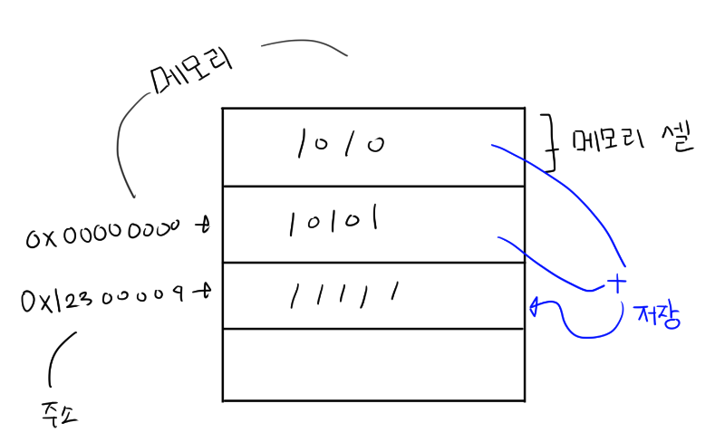 즉 10+20=30을 실행할 경우 메모리에는 10,20,30 전부 2진수화 되어 메모리에 저장되는 것입니다.